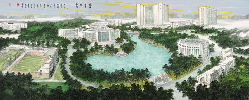 策展人王茂介绍,此次展览精选吉文明近年创作的40幅力作,题材覆盖鄂南灵秀山水、校园人文景致与西部雄浑风光,实现“理想家山”与“时代家园”的双重书写。作品中题画诗与画面意境交融,尽显文人画雅韵。